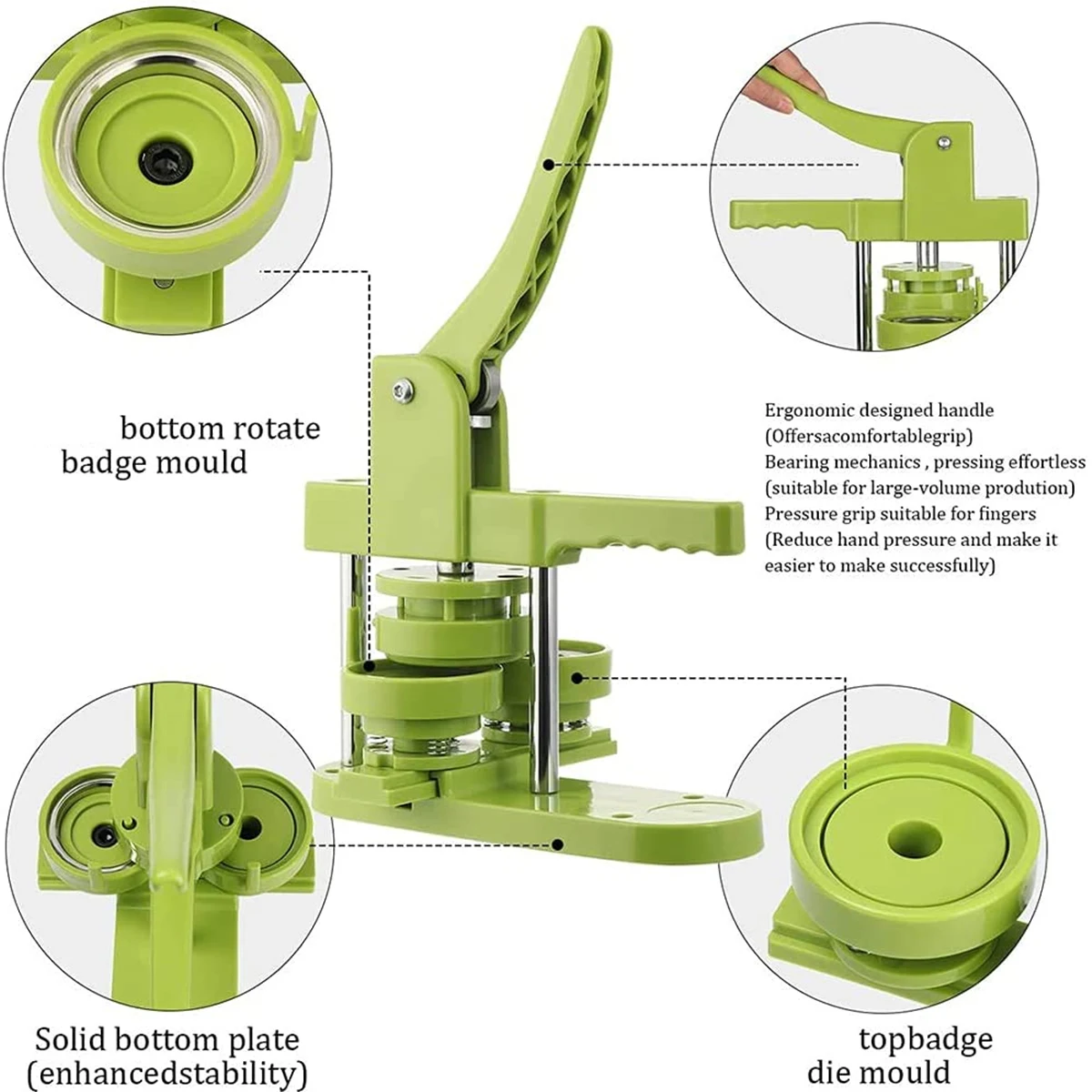 Кнопка делая машину может начать делать кнопки немедленно, без необходимости собрать сложные части машины, сохранить время и энергию. Спецификация: Материал: пластик, металл Цвет: зеленый Размер: 25x7x3 8 см/9.84x2.76x14.96inch Посылка включает в себя: 1. Машина для изготовления кнопок со сменной формой 2. Части кнопок 100-500 комплектов 3. Инструмент для резки значка 4. Инструмент для отвертки |