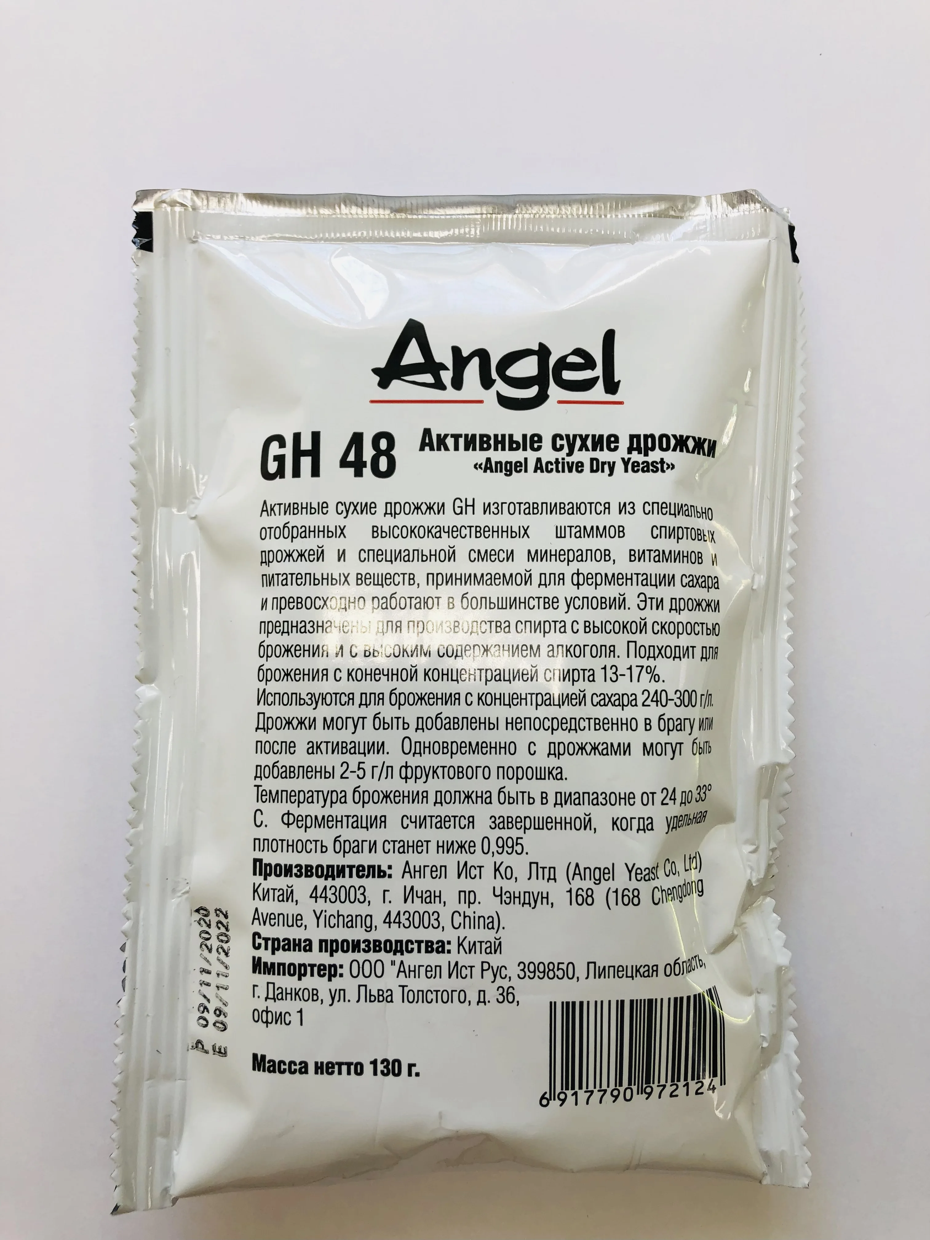 Эти спиртовые турбо дрожжи предназначены для производства спирта с высокой скоростью брожения и с высоким содержанием алкоголя. Дрожжи Ангел GH 48 подходят для брожения с конечной концентрацией спирта 13 — 17 %. Рассчитаны на 30-40 литров браги с гидромодулем 1:3 - 1:4.