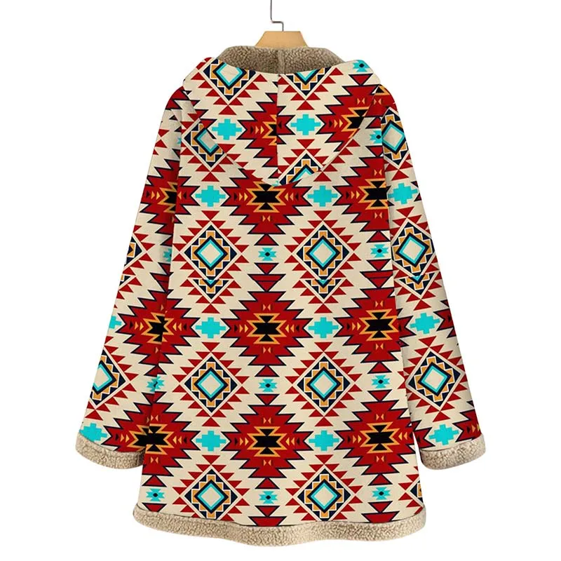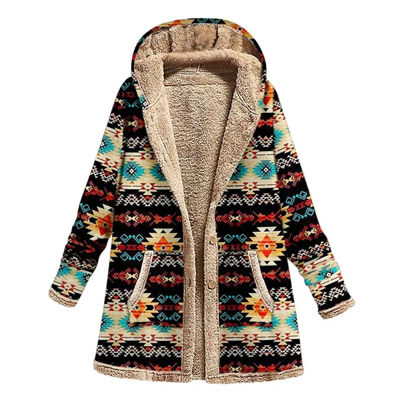 Зимняя Флисовая теплая куртка с капюшоном, женская модная винтажная куртка с этническим принтом и длинным рукавом, женская уличная верхняя одежда, новинка 2022