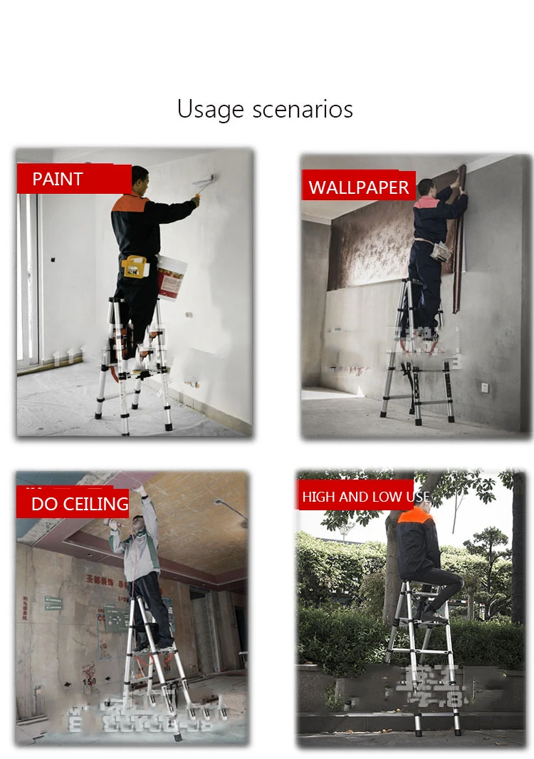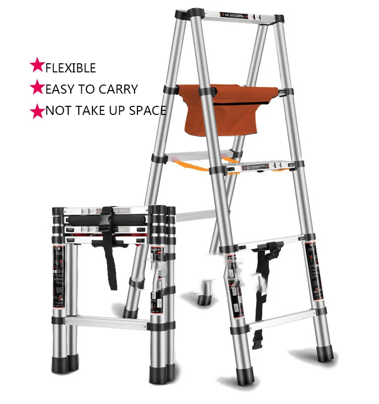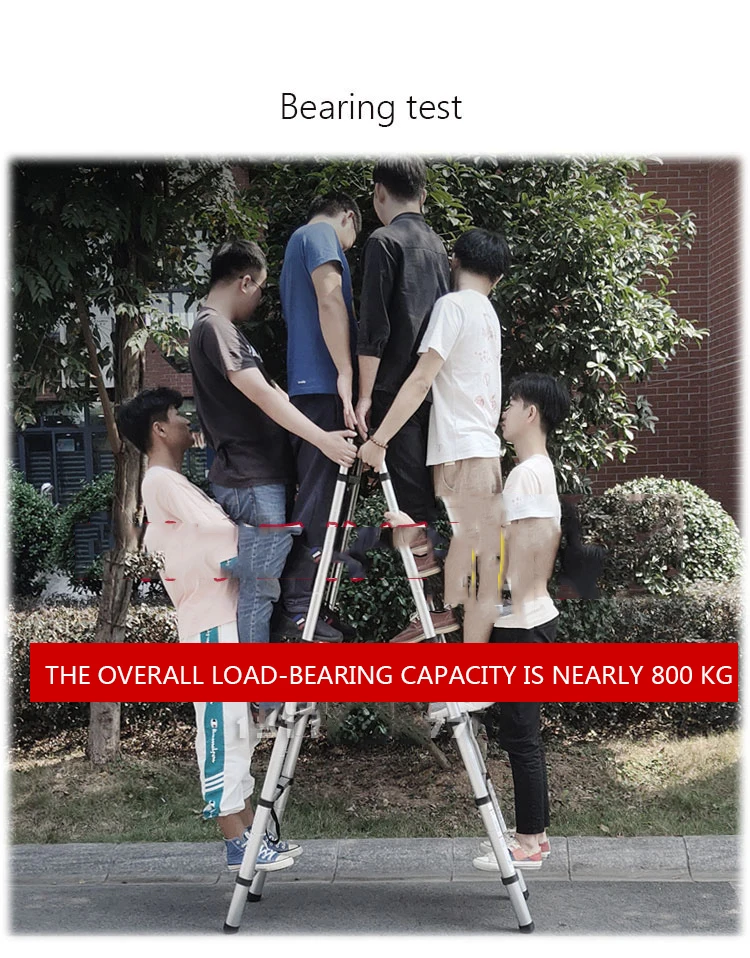 1,4 м + 1,4 м утолщенной Алюминий сплав телескопическая лестница легкий 5-ступенчатая лестница с узором «елочка» Портативный складной Инженерная лестница