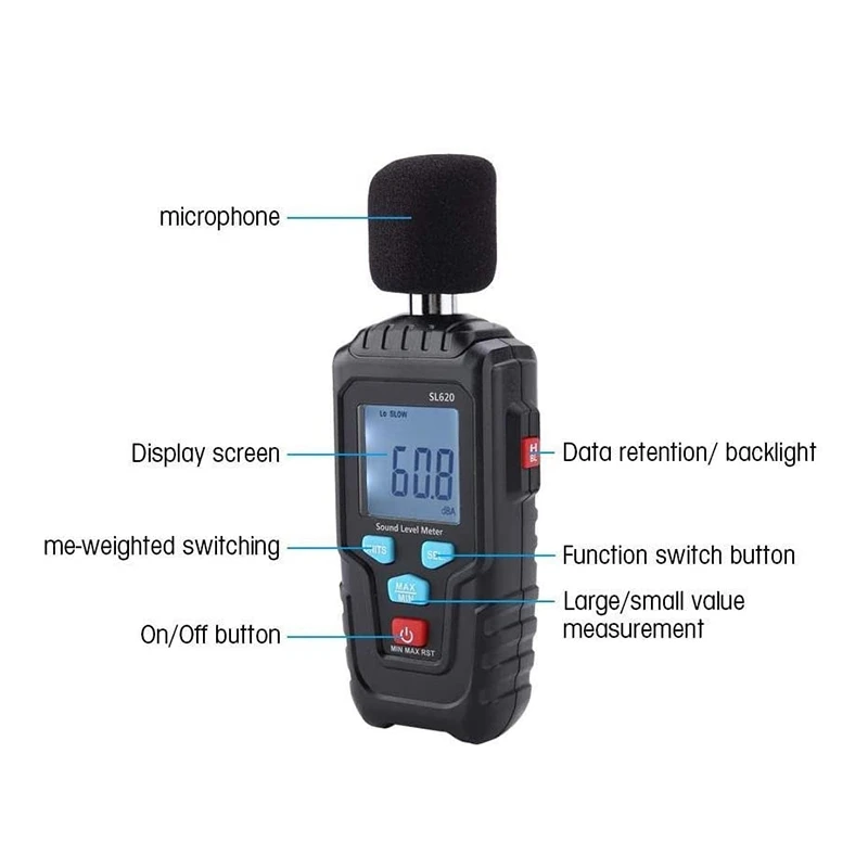 Подходит для: измеритель уровня звука подходит для проверки качества звука на заводах, офисах, домах, школах и строительных площадках.