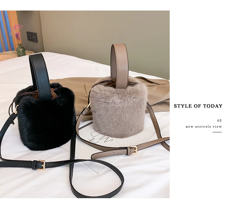 Женская сумка 2021 осень и зима новая Ретро плюшевая сумка-ведро модная трендовая Диагональная Сумка на одно плечо