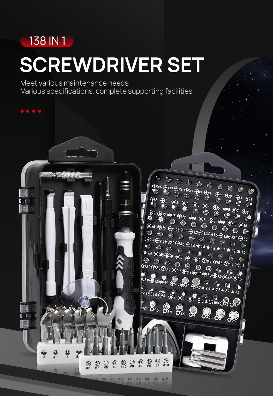 Набор прецизионных отверток ONENUM 138/122 в 1, магнитные винтовые биты Torx Phillips с ручкой отвертки, инструменты для ремонта дома