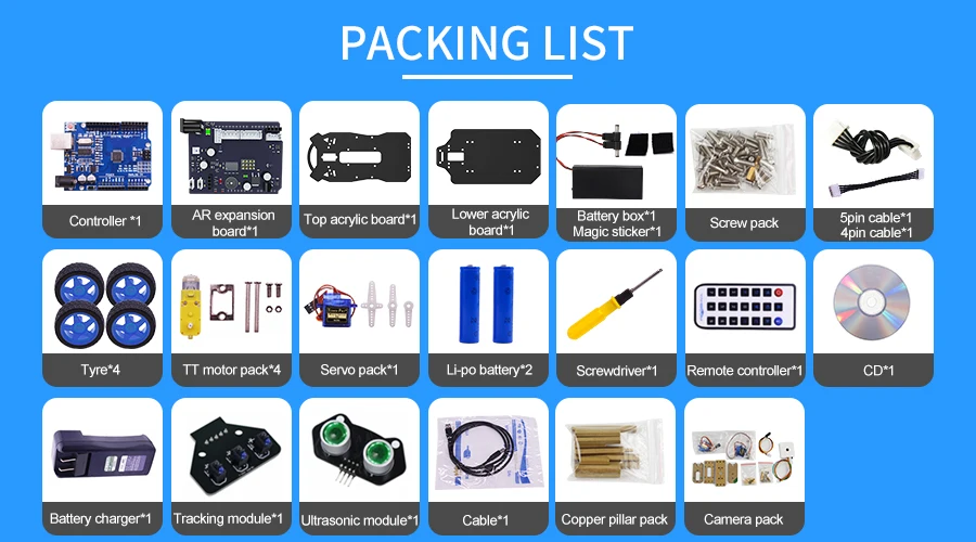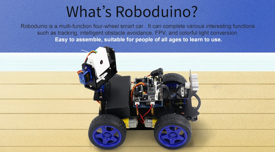 Roboduino Smart Robot Car Kit-это обучающий и забавный комплект, основанный на плате расширения привода робота Yahboom. Он содержит красочный Ультразвуковой Модуль который интегрирует свет и обнаружение РГБ, 3 чаннле отслеживая модуль, регулятор инфракрасн, модуль камеры ВИФИ, платформу 2 ДОФ и другие компоненты, которые делают автомобиль для того чтобы достигнуть умный отслеживать и автоматический избегают, прохладный свет, пение зуммера, ИК-управление, И т. Д. Мы специально разработали приложение для iOS / Android для автомобиля Roboduino и использовали его с модулем камеры WIFI и платформой 2DOF. Он может передавать захваченное видео в интерфейс приложения для отображения и снимать фото и видео. Он поддерживает простое графическое Программирование Helloblock и более сложное Программирование кода IDE, которое подходит для пользователей разных возрастов. Кроме того, мы также предоставим серию учебных пособий, от простого управления портом ввода-вывода до внешних экспериментов с различными типами сенсорных модулей до интегрированного дистанционного управления APP с несколькими функциями, позволяя создать свой собственный робот-автомобиль. Не только стимулирует детское творчество, но и закладывает основу для дальнейшего обучения в будущем.