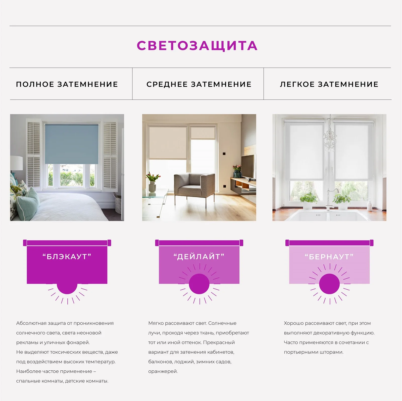 Штора закрывает: весь оконный проем или непосредственно само стекло и может фиксироваться в любом положении. Она быстро убирается и надежно защищает от посторонних взглядов. Компактность помогает сэкономить пространство.