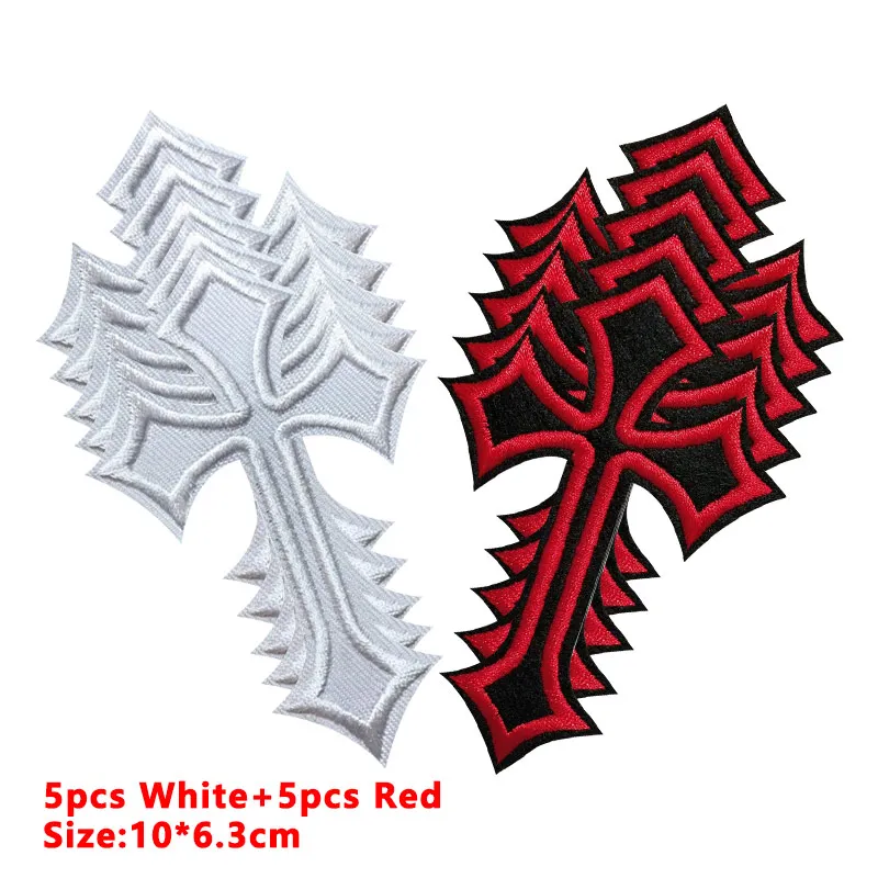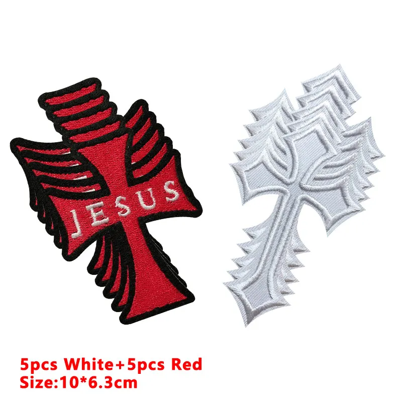 10 шт./лот, нашивки с изображением Иисуса, красные, белые нашивки с вышитыми крестами, нашивки для одежды, нашивки в полоску, нашивки на одежду