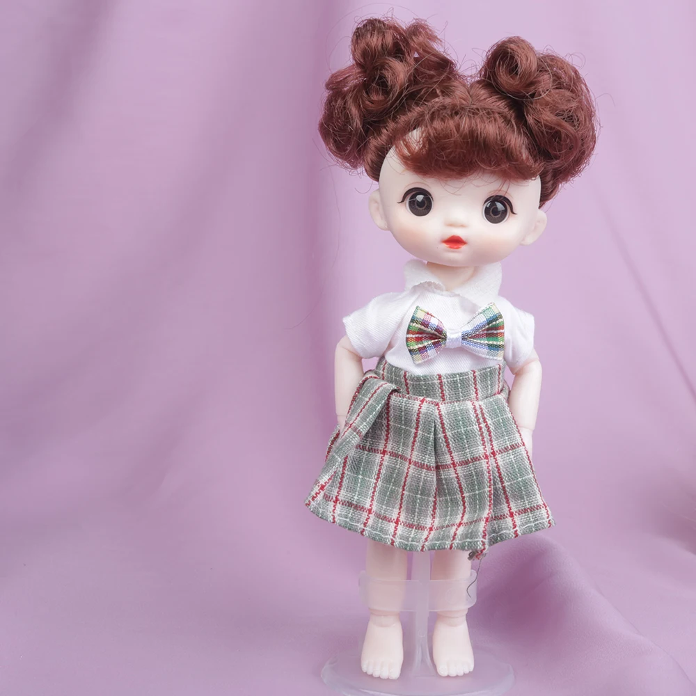 Милые уход за кожей лица 1/12 BJD Кукла 16 см Школьный костюм 13 шарнир куклы в голубую клетку EyesToy маленькая девочка платье JK Make Up игрушки подарок для девочек куклы
