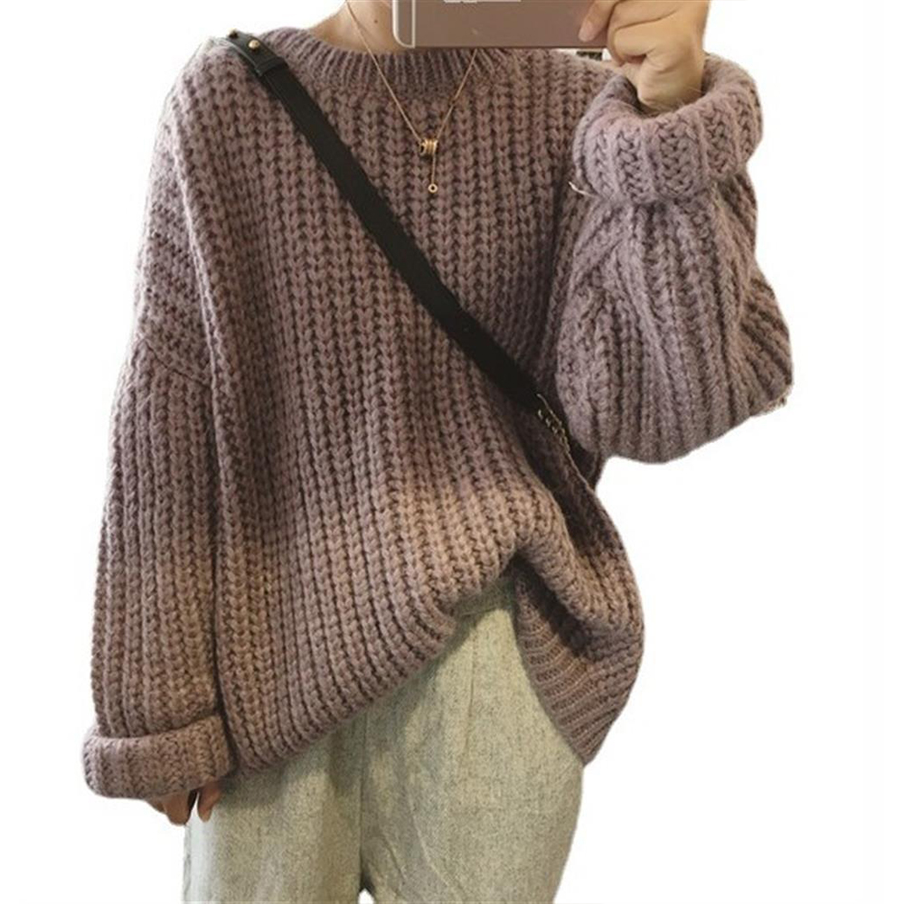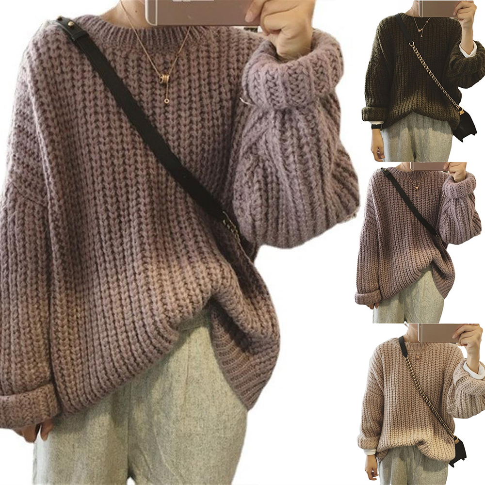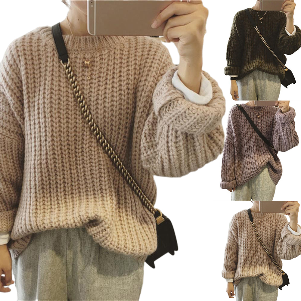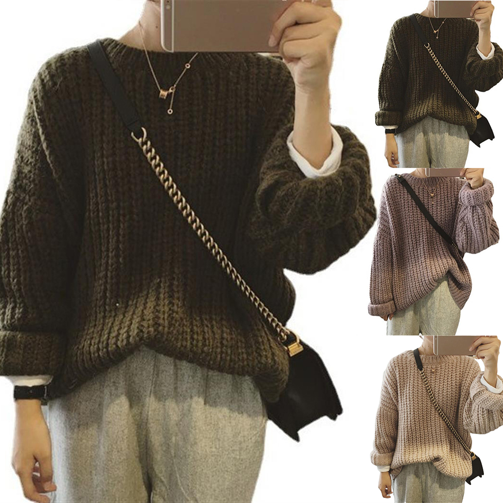 Женский трикотажный свитер из искусственной шерсти с длинным рукавом и круглым