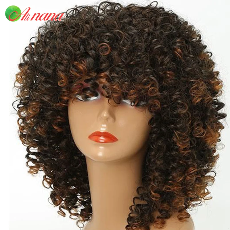 Aliballad Straight Human Hair Wigs With Bangs Brazilian Full Machine Made For Black Women 150% Remy Wig | Шиньоны и парики