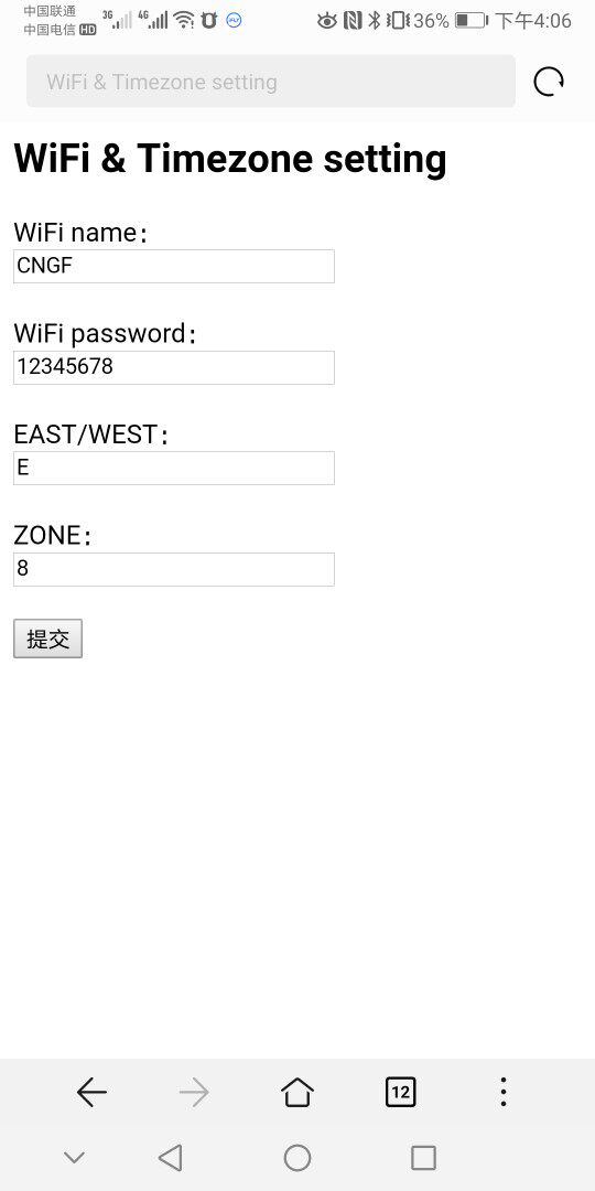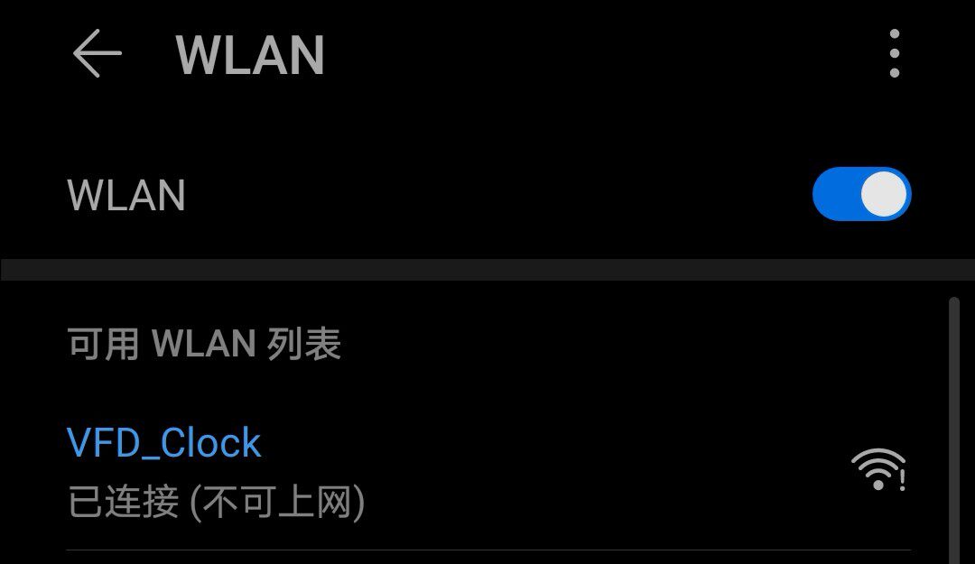 . Часы запускают горячие точки Wi-Fi (SSID:VFD-CLOCK), мобильный телефон