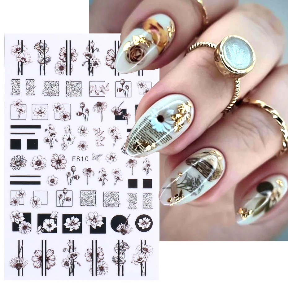 Стиль: черно-белые Слайдеры для дизайна ногтей