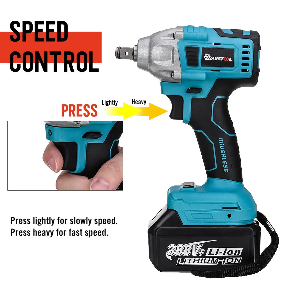 Особенности: Электрический гаечный ключ 800N.M высокий крутящий момент, плавный Переключатель изменения скорости. Мощный электрический гаечный ключ, многоцелевой, супер мощный. Вал из вольфрамовой стали, высокая твердость и износостойкость. Подходит для строительных площадок, технического обслуживания, деревообработки и т. Д. Бесщеточный двигатель не генерирует искры, когда он работает, и двигатель не изнашивается. Светодиодный светильник. Светильник с индикатором зарядки с 2 передачами