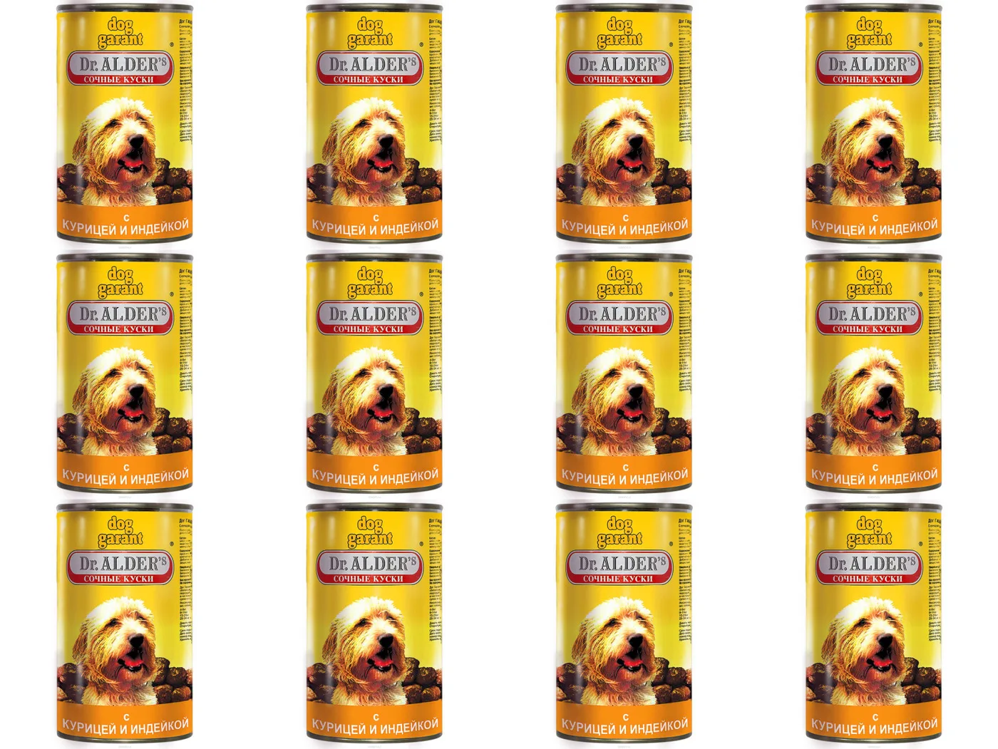 Консервированный корм для собак Dr. Alders Dog Garant со вкусом курицы и индейки – это сочные кусочки мяса в желе. По всем параметрам (запаху, консистенции) такой корм максимально приближен к естественной пище животных, что делает его привлекательным и аппетитным. В комплекте: 12 шт