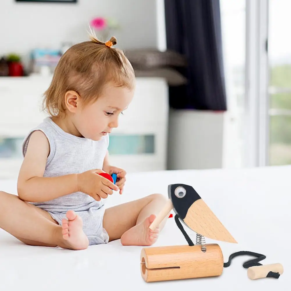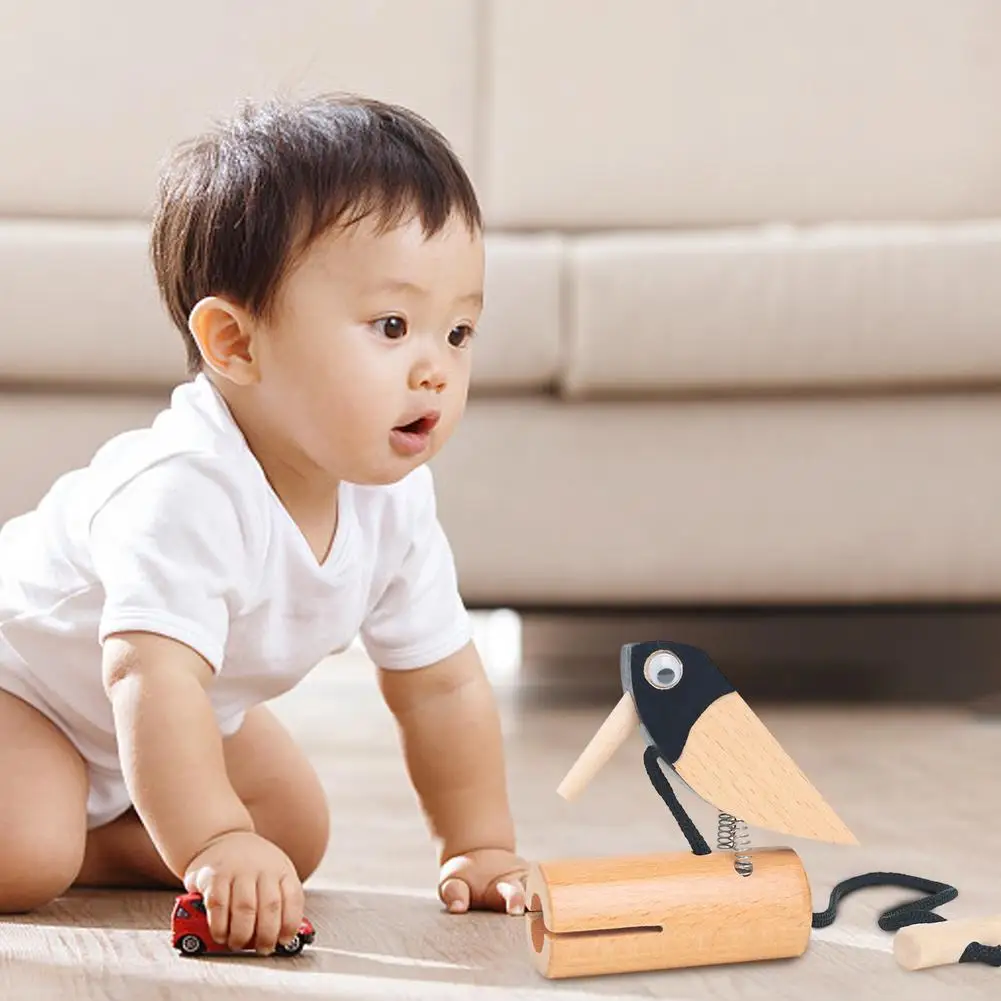 3. Как использовать: Потяните за веревку игрушка «Дятел» вручную, чтобы сделать клюв дятела быстрым звуком.