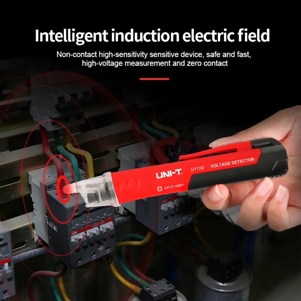 3. Интеллектуальное Индукционное электрическое поле: UT12D Интеллектуальный Бесконтактный Электрический тестер, с использованием бесконтактного высокочувствительного датчика, два варианта чувствительности, безопасное и быстрое электрическое измерение высокого напряжения с нулевым контактом.