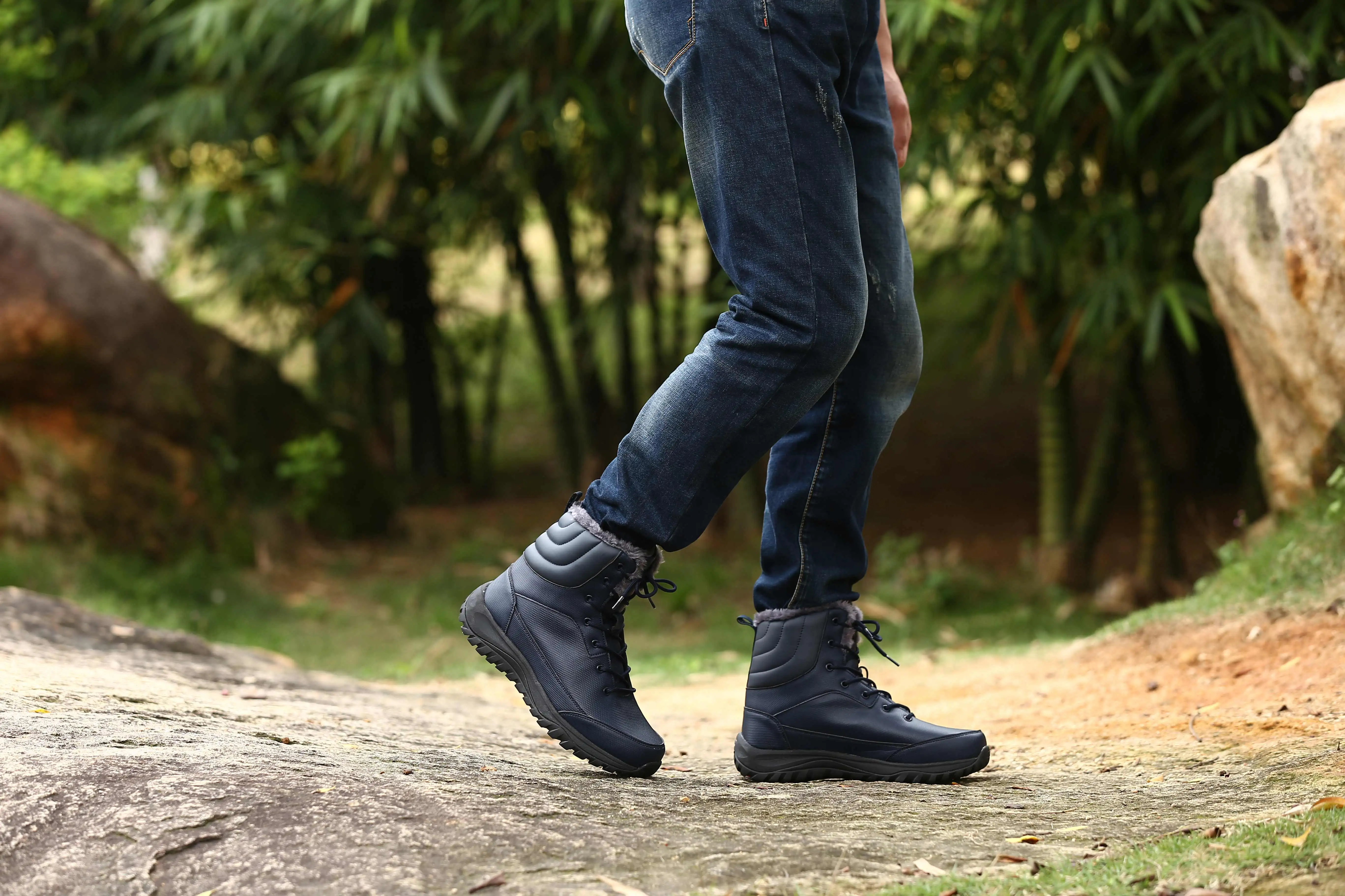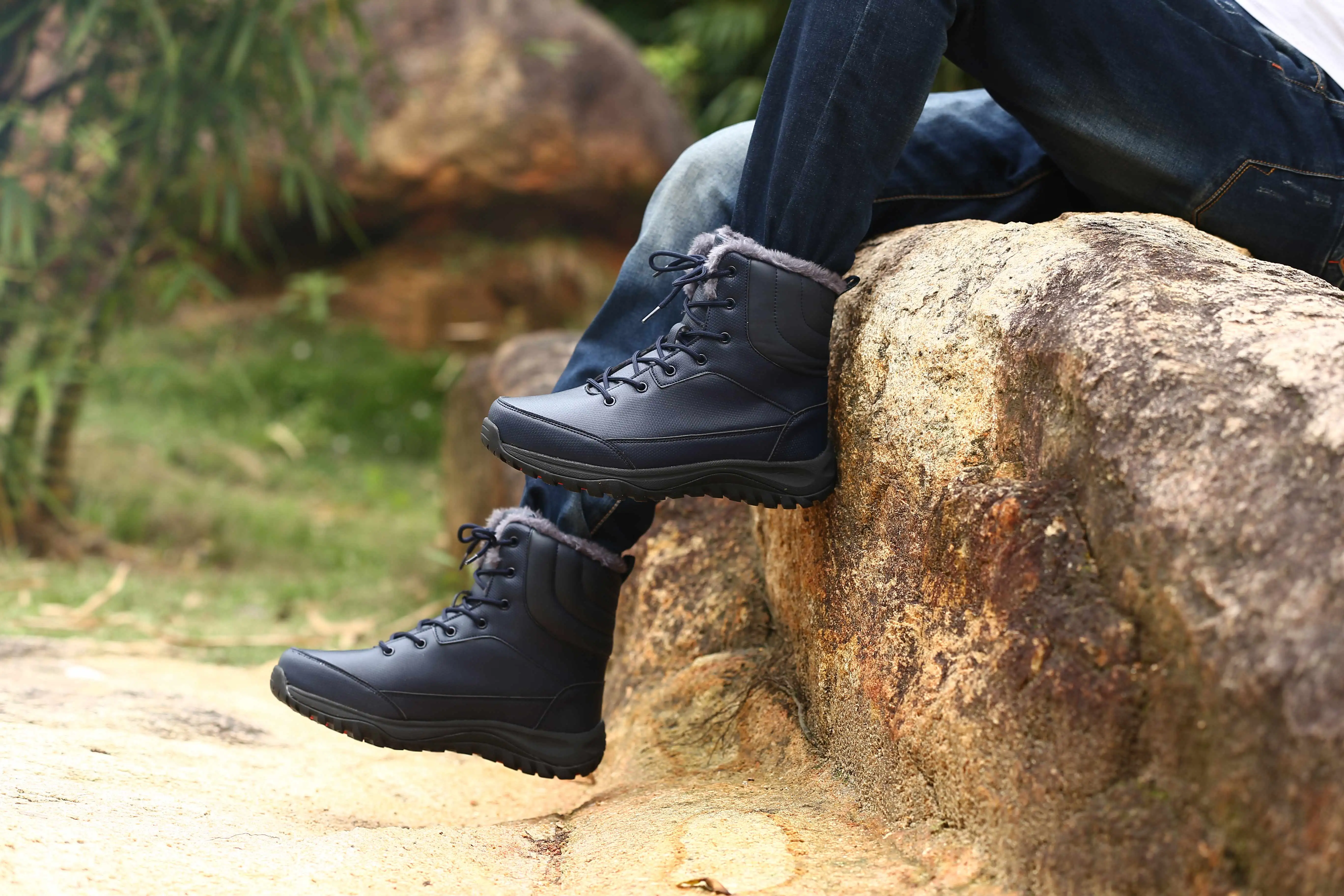 YISHEN Men Boots Wholesale Black Blue Snow Winter Unisex Hiking Boots Waterproof Anti-Slip Fully Fur Lined Walking Style Shoes