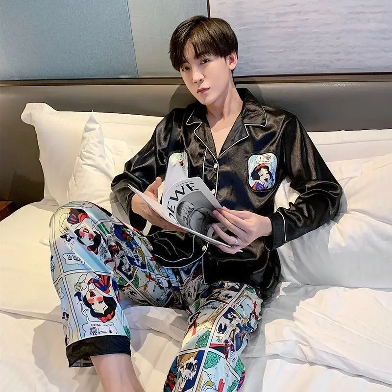 Клетчатая Хлопковая пижама для мужчин зимняя с длинным рукавом Мужская на