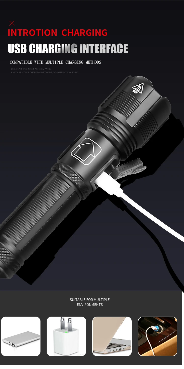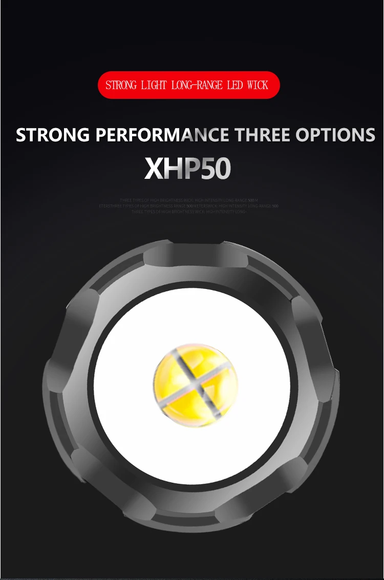 Большой диапазон супер яркий XHP50 светодиодный фонарик водонепроницаемый высокое качество мощный фонарик USB Перезаряжаемый фонарь для приключений