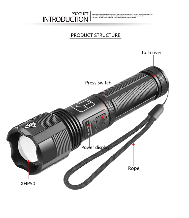 3. Этот продукт имеет функцию напоминания о мощности, вы можете узнать статус питания фонарика в любое время и в любом месте