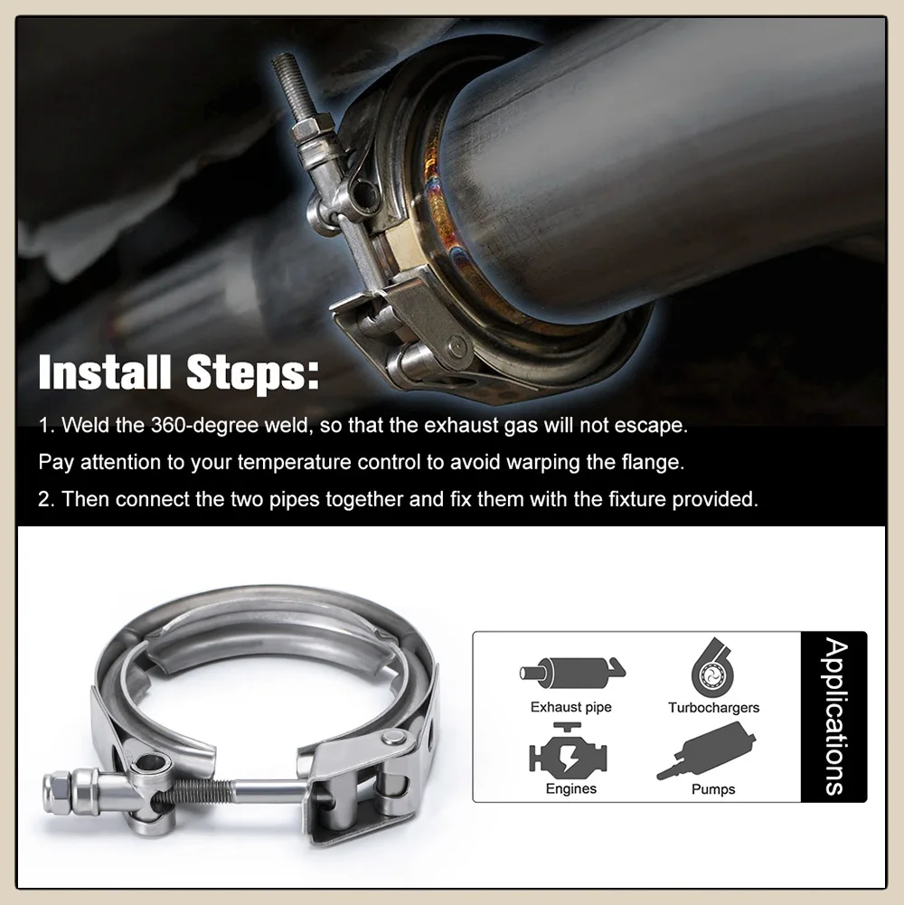 Универсальные автомобильные аксессуары Обычный или быстроразъемный v-зажим-2,0 "/2,25" 2,5 "/2,75"/3,0 "/3,25"/3,5 "/4,0" Turbo/Downpipe/интеркулер/шланг/Комплект зажимов выхлопной трубы из нержавеющей стали 304 VCN/VCQ