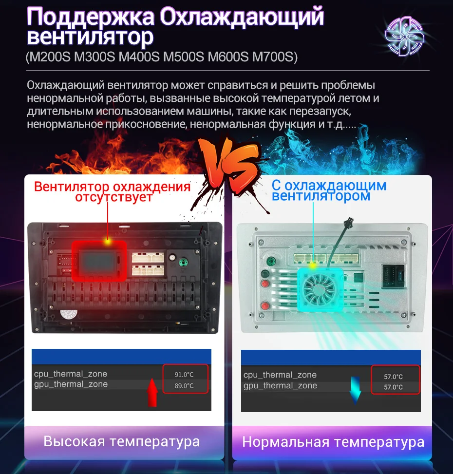> Поддержка вентилятора охлаждения (M200S M300S M400S M500S M600S M700S)Вентилятор охлаждения может справиться и решить ненормальную работу, вызванную высокой температурой летом и долгосрочным использованием машины, например, перезапуск, аномальное касание, ненормальная функция, ete .....