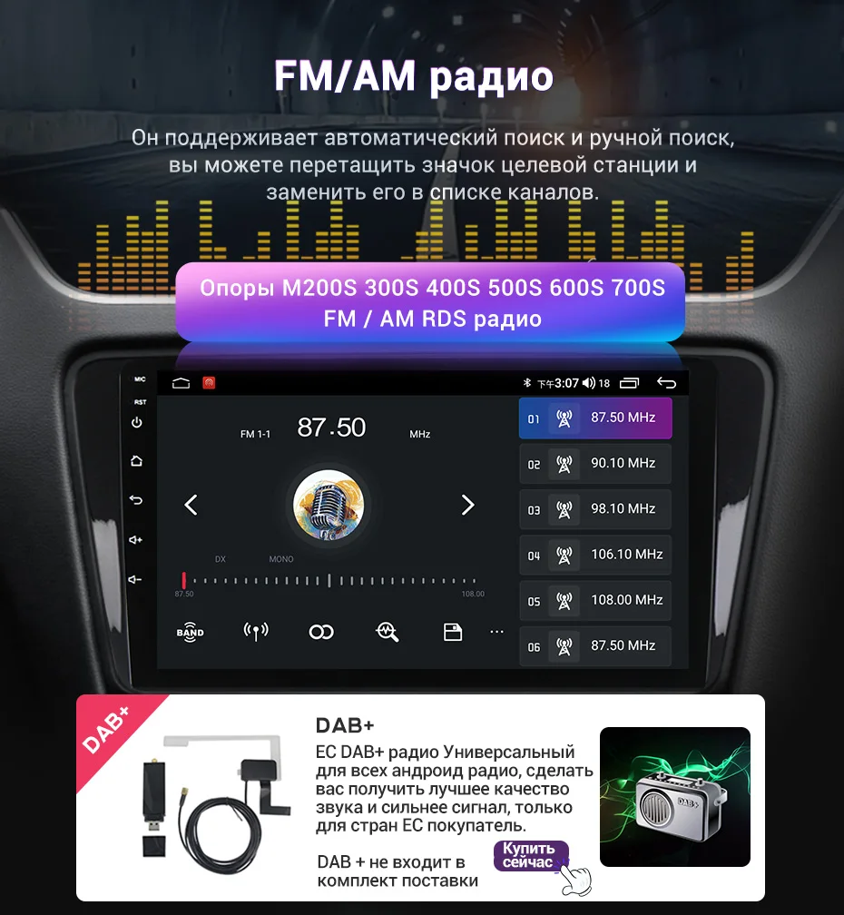 > FM/AM радио (M200S M300S M400S M500S M600S M700S)Он поддерживает автоматический поиск и ручной поиск, вы можете перетащите значок целевой станции и заменить его в список каналов.