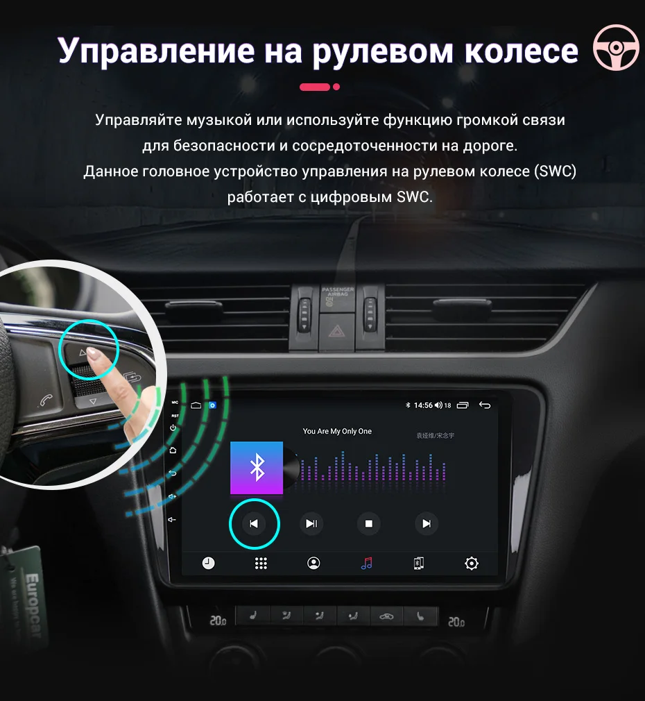 Управляйте музыкой или используйте функцию громкой связи для безопасности и увязывания на дороге вперед. Этот Головной блок управления рулевым колесом (SWC) работает с цифровым SWC.Поддержка функции OBD2