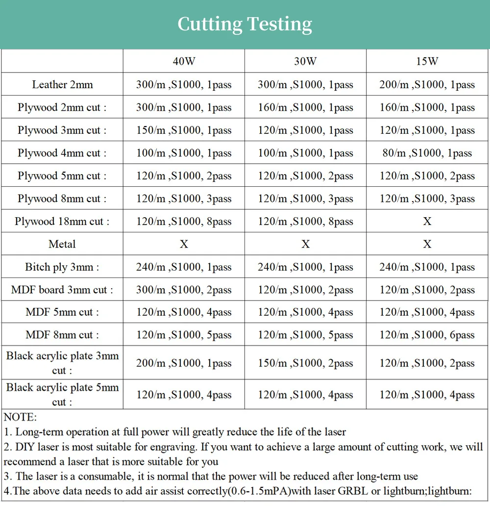 Мощность лазера: 40 Вт = 30W> 15w> 5,5 w> 3,5 w