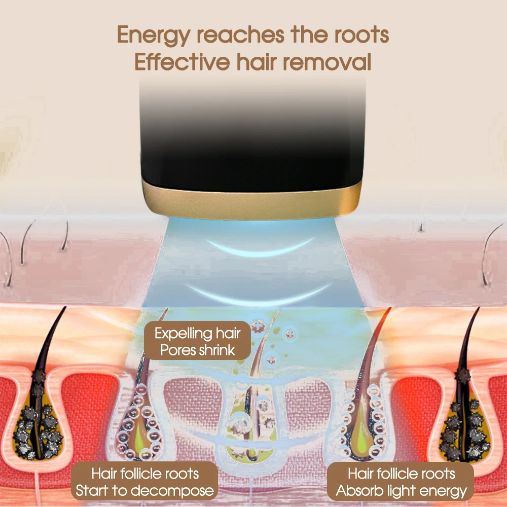 ● Устройство для удаления волос использует фототермический эффект, генерируемый устройством, чтобы действовать под кожей, так что волосяной фолликул теряет способность регенерировать, чтобы достичь эффекта удаления волос, что удобно и безопасно.