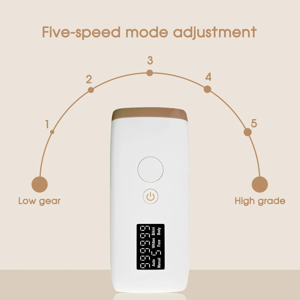 ● 999,999 Точечный светильник, один человек может использовать его в течение 10 лет. ЖК-дисплей, оставшаяся продолжительность использования видна. 5-уровневая функция регулировки, уход за каждый сантиметр о нежной коже. Он предлагает безболезненный процесс по сравнению с некоторыми традиционными методами удаления волос. Интенсивный Импульсный светильник глубоко проникает в волосяной фолликул для эффективного удаления волос. С постоянным эффектом полностью удаляет нежелательные волосы после тщательного лечения.