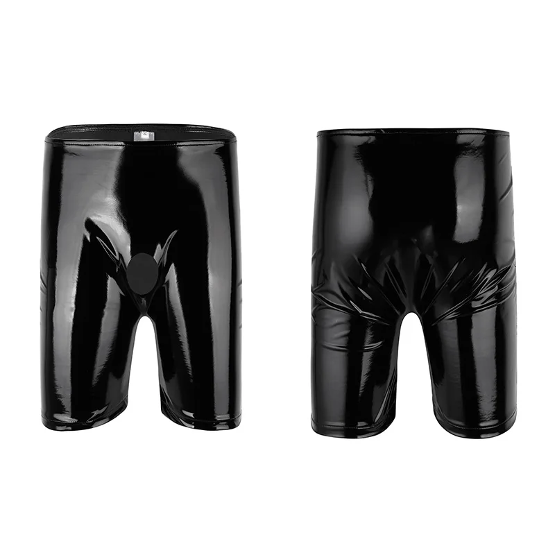 # M-XXL черные мужские блестящие лакированные кожаные с отверстием для пениса, Длинные трусы-боксеры