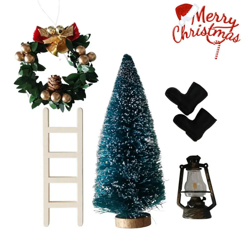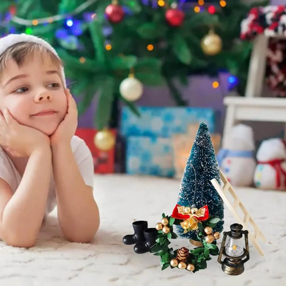 Этот набор украшений кукольного домика включает в себя рождественскую елку, гирлянду, лестницу и другие украшения, полные рождественского духа. Он красиво сделан и любим детьми.