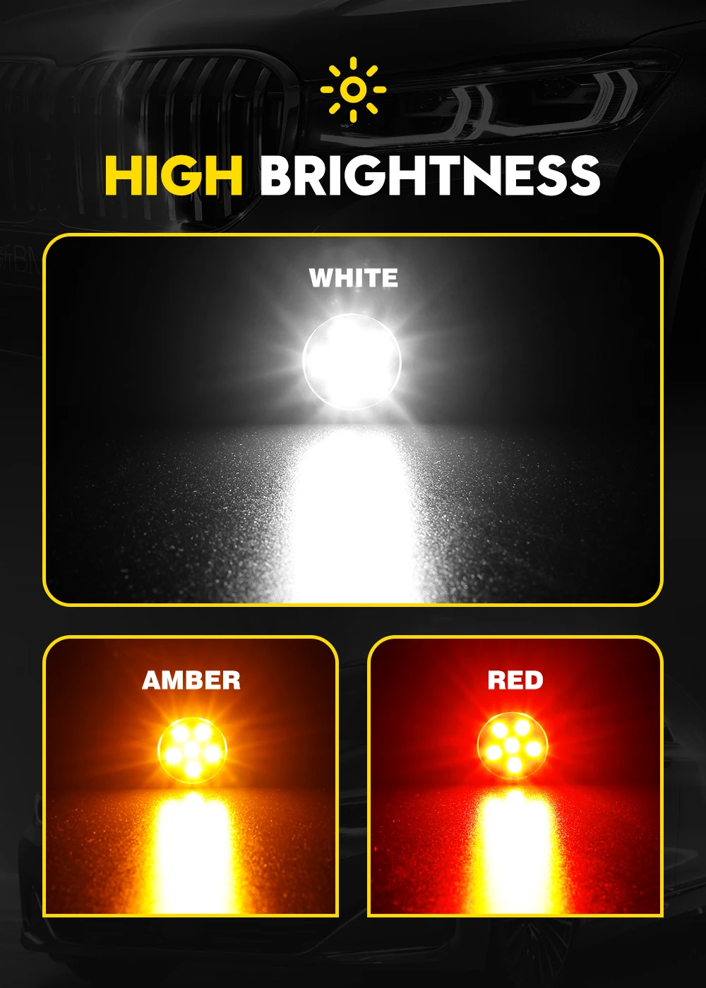 Цветовая температура: 6000K холодный белый/Янтарный Желтый/Красный