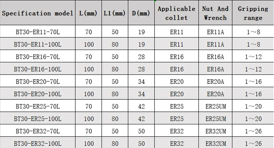 Название продукта: BT30 BT40 ER11 ER16 ER20 ER25 ER32 ER40 держатель инструмента