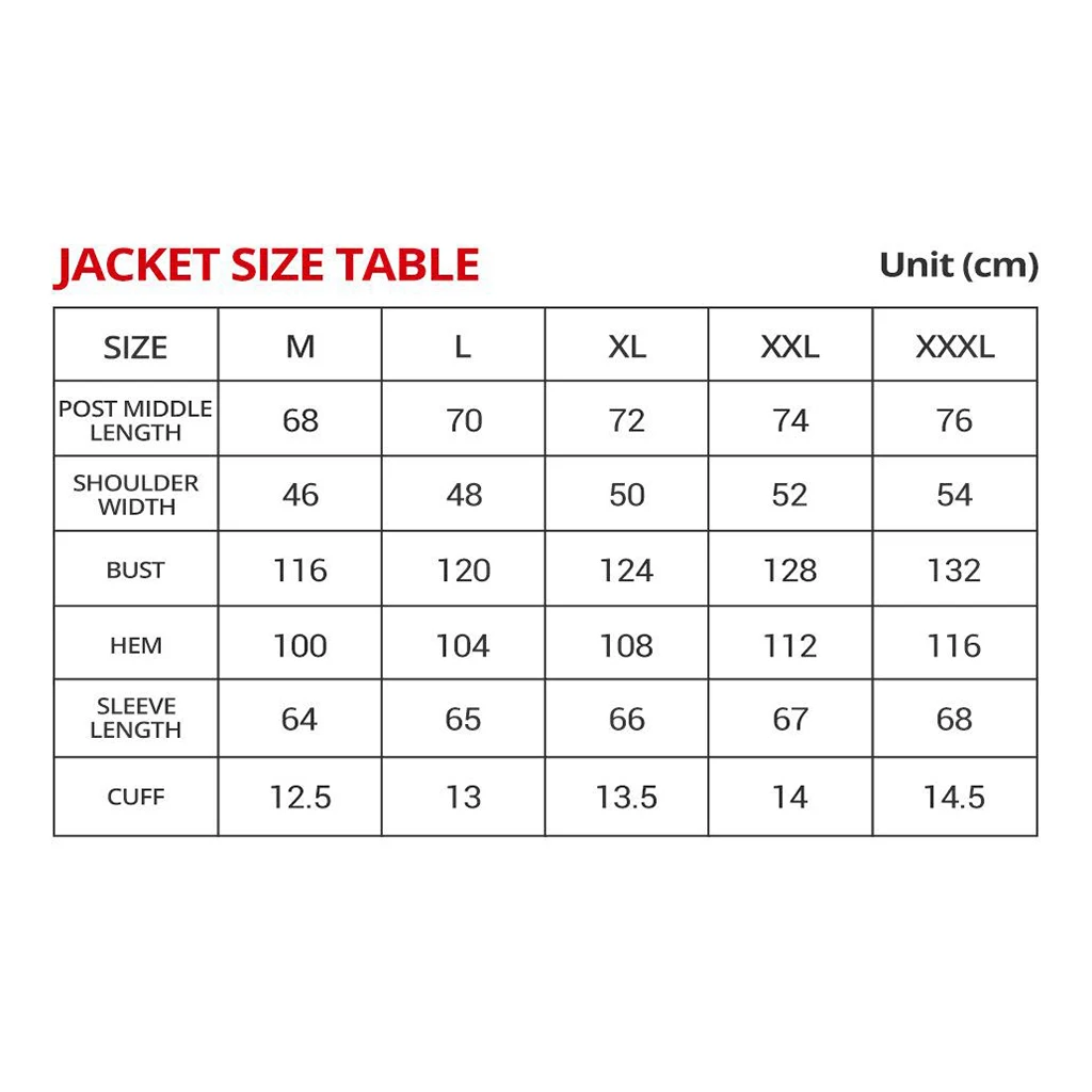 XXXL-Длина поста: 76 см/29,92 дюйма, ширина плеч: 54 см/21,26 дюйма, обхват груди: 132 см/51,97 дюйма, подол 116 см/45,67 дюйма, длина рукава: 68 см/26,77 дюйма, манжета Ширина 14,5 см/5,71 дюйма