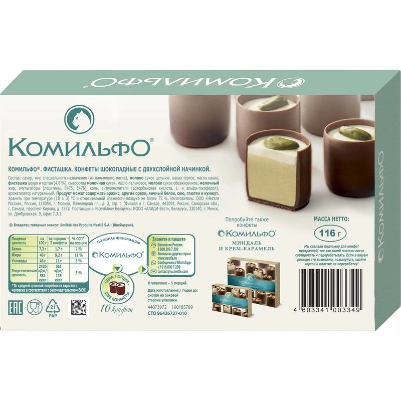 Комильфо. Фисташка. Конфеты шоколадные с двухслойной начинкой. 116г