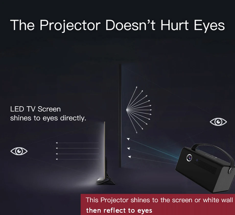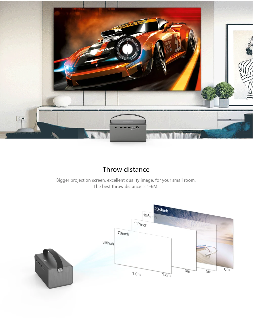 Подключение мультимедийных устройств: оснащен HDMI, TF, AV, наушниками, usb-интерфейсами, может легко подключаться с ТВ-приставкой, Fire Stick TV, Chromecast, ПК, ноутбука, планшета, внешних динамиков, xbox, dvd-плеер, PS3, PS4, usb-флешка, медиаплееры, Смартфон и т. д. идеально подходит для воспроизведения видео, сериалов, презентаций, фильмов на открытом воздухе, игр и т. Д.