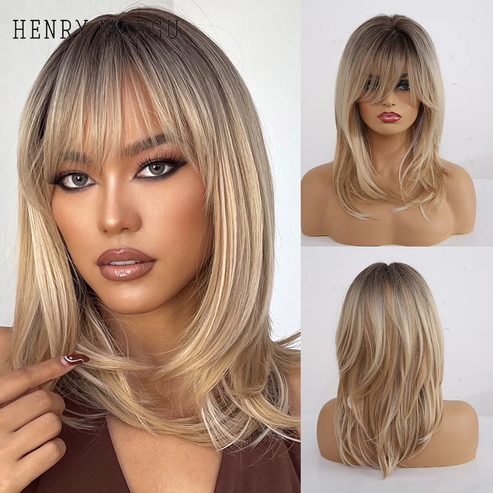 Генрих маргу прямой многослойный синтетический парик естественная длина плеча Омбре коричневый пепельный блонд парик с челкой для черных женщин косплей