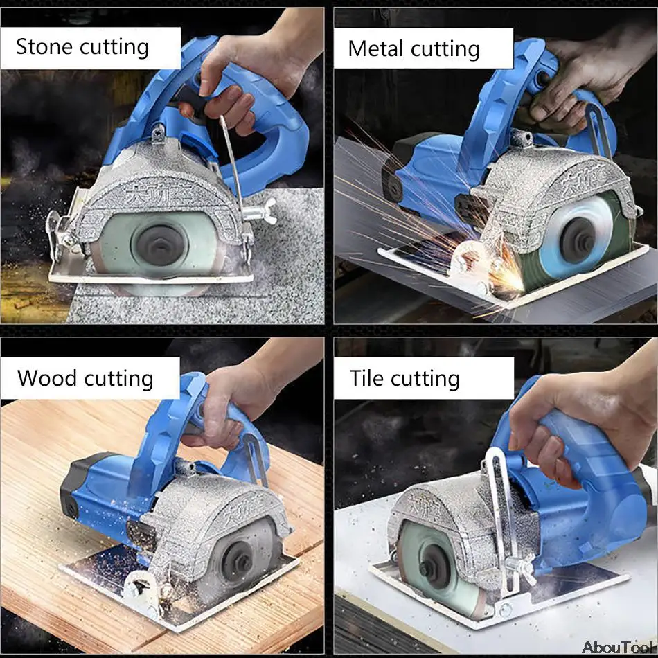 Аксессуары: мраморная машина + лезвие для металлической пилы + деревообрабатывающий пильный диск + лезвие для каменной пилы + лезвие для пластиковой пилы
