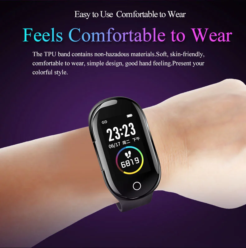 Функции приложения: монитор сердечного ритма, кровяное давление, пользовательский профиль, умный анти-потеря, сидячий режим, вибрация для поиска смарт-браслета, будильник, спортивный пробег, тени для фотографирования, монитор сна, счетчик калорий, шагомер, оповещения о входящих звонках и сообщениях