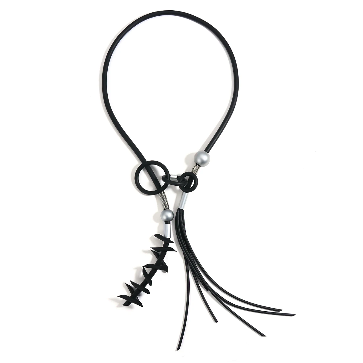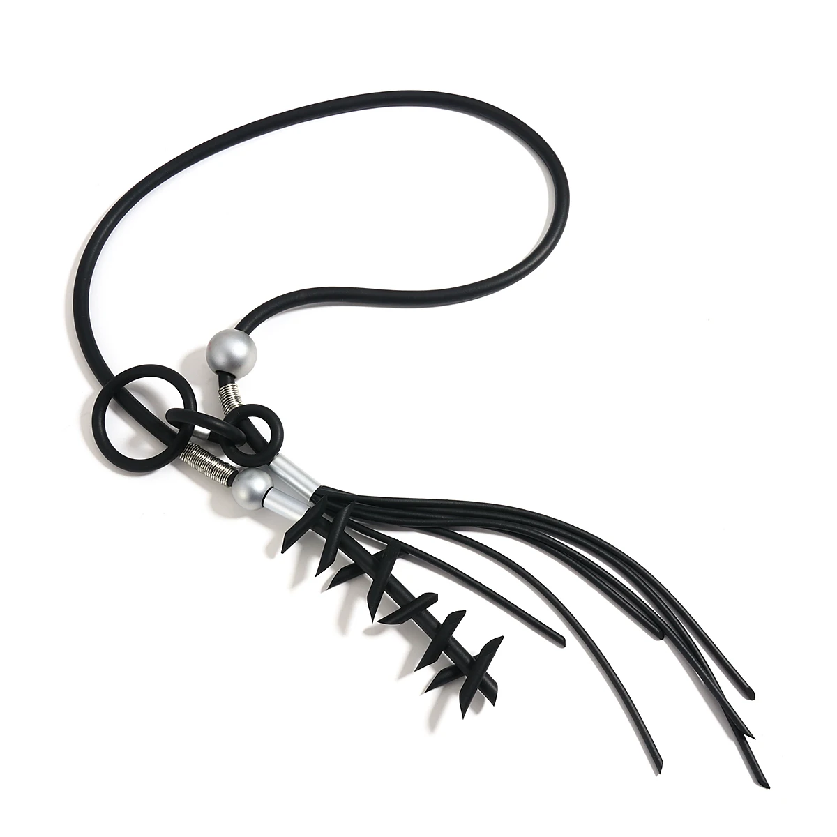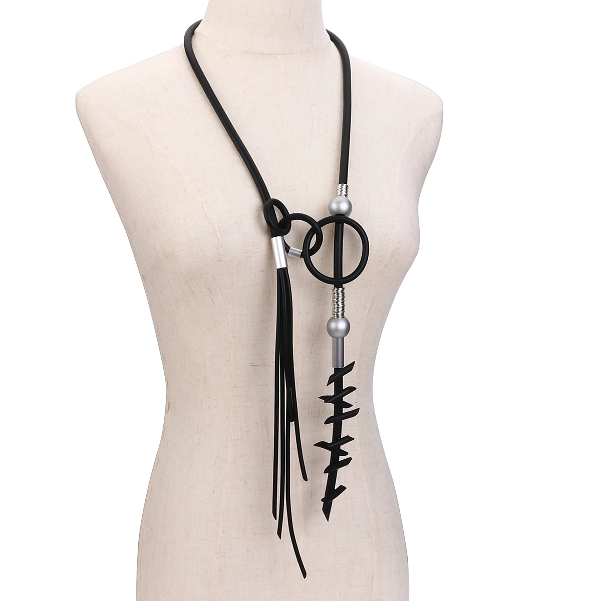 Amorcome, панк стиль, легкое длинное резиновое ожерелье для женщин, жемчуг, черная цепочка с кисточками, нагрудник, ожерелье, Mujer