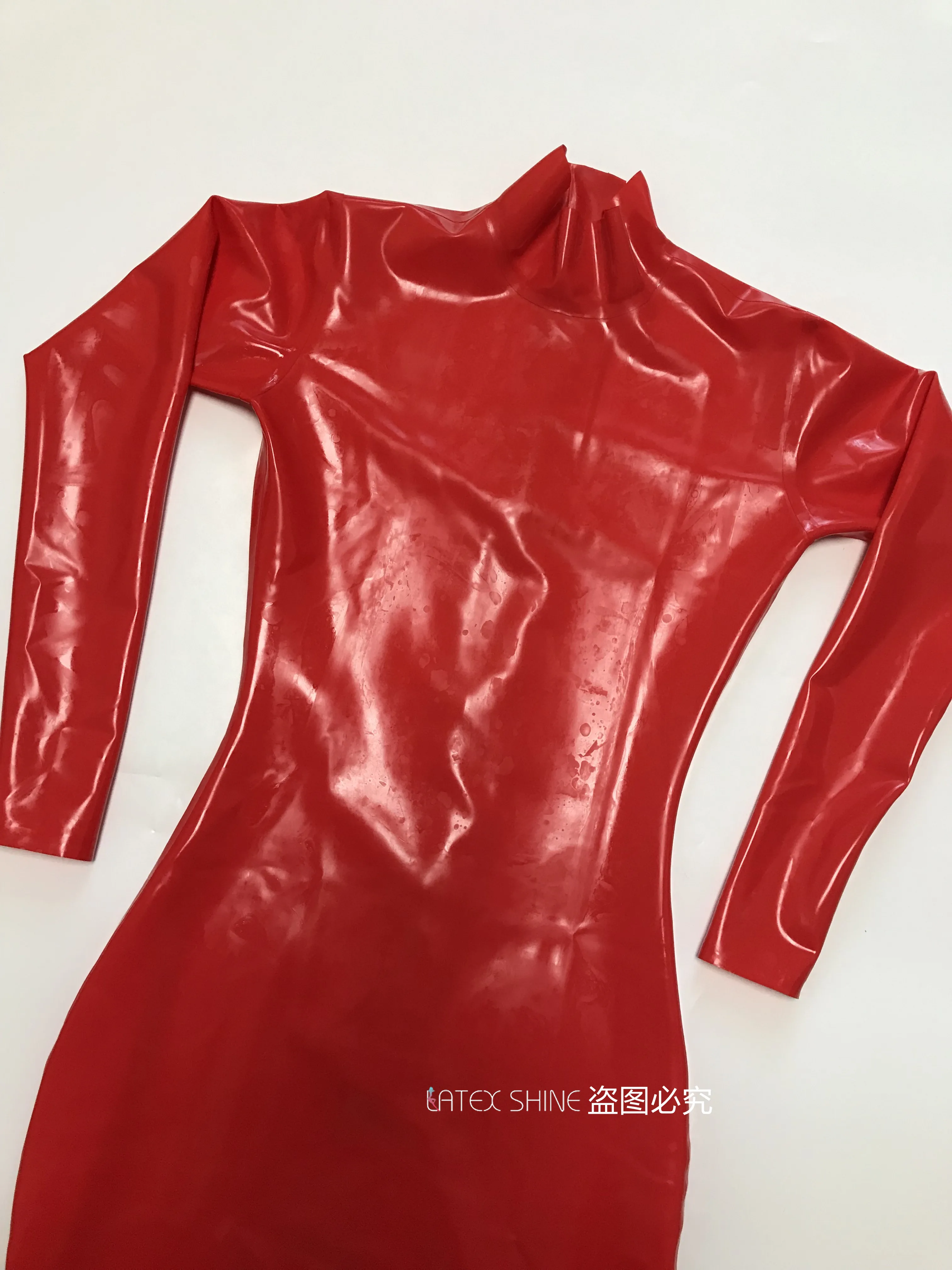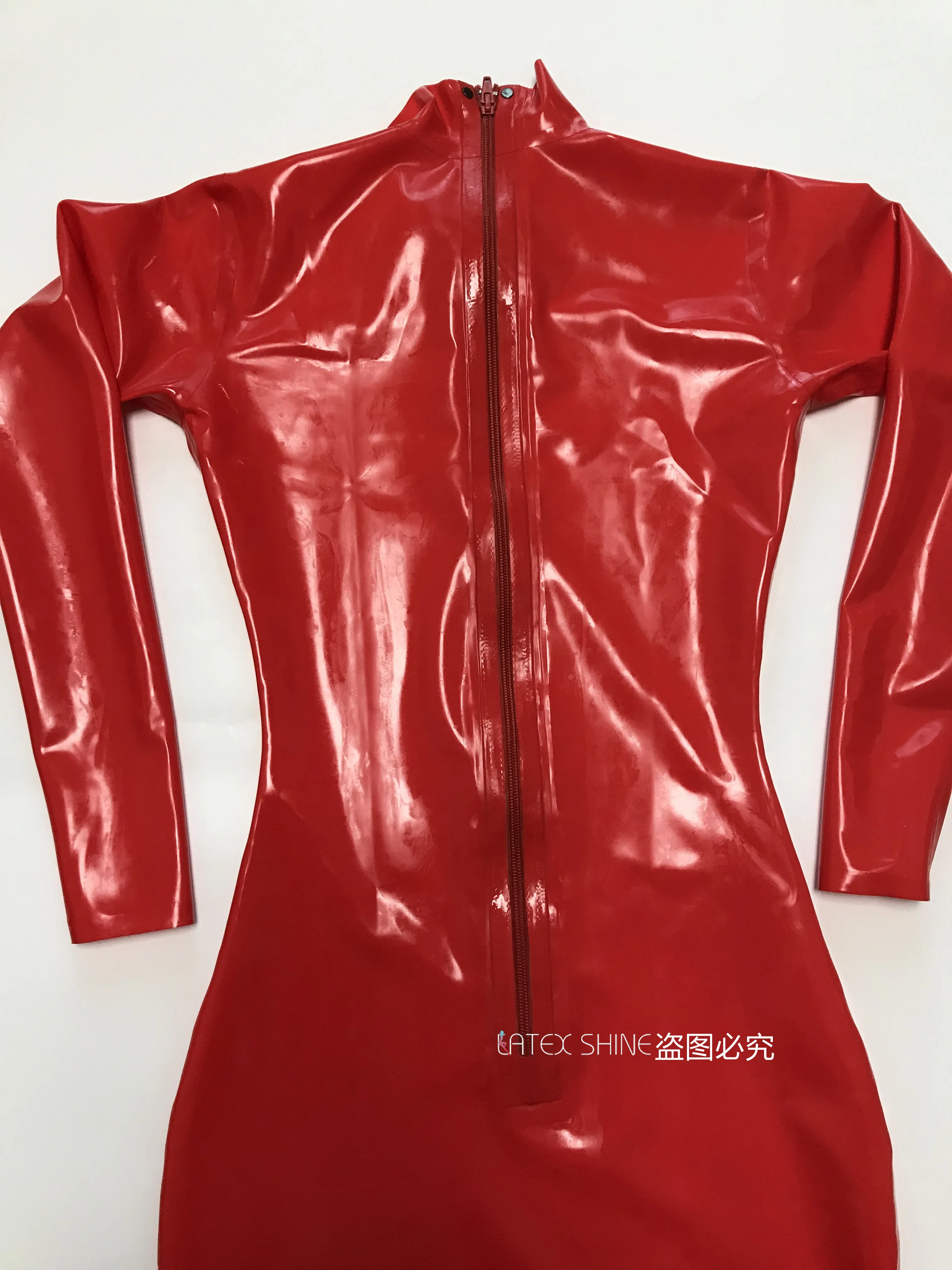 Это красное латексное облегающее платье длиной до бедра, сзади молния легко надевается.