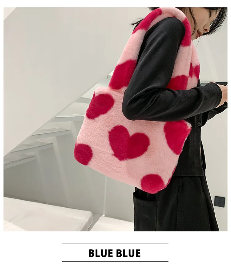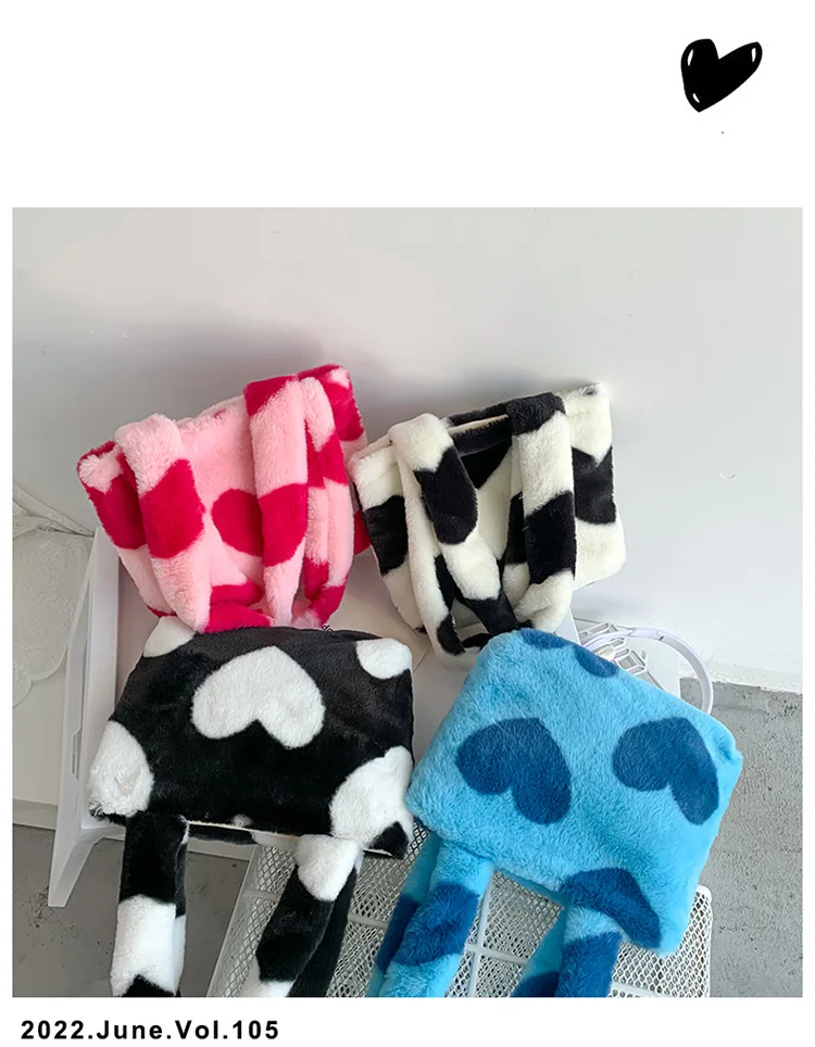 Зимняя пушистая мягкая плюшевая женская сумка на плечо повседневные однотонные