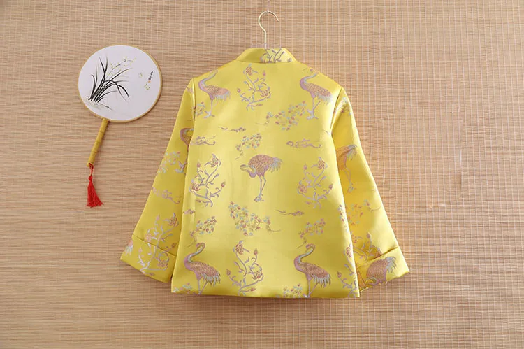 Женская верхняя одежда в стиле династии Тан, Осенние, с кисточками, кран жаккардовые китайские Стиль в винтажном стиле; Свободное короткое пальто повседневные женские Топы Куртка женская S-XXL
