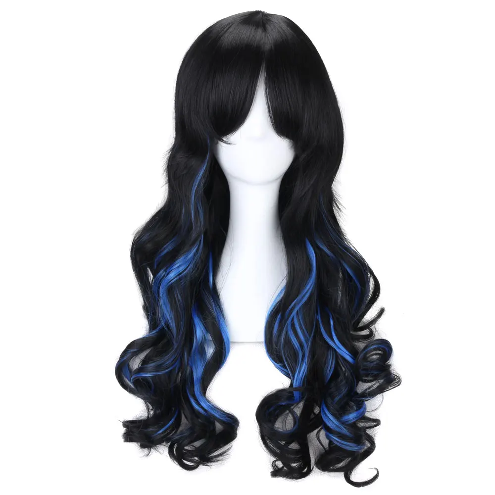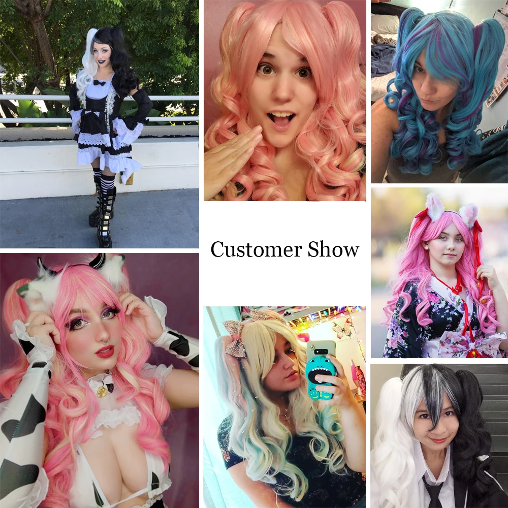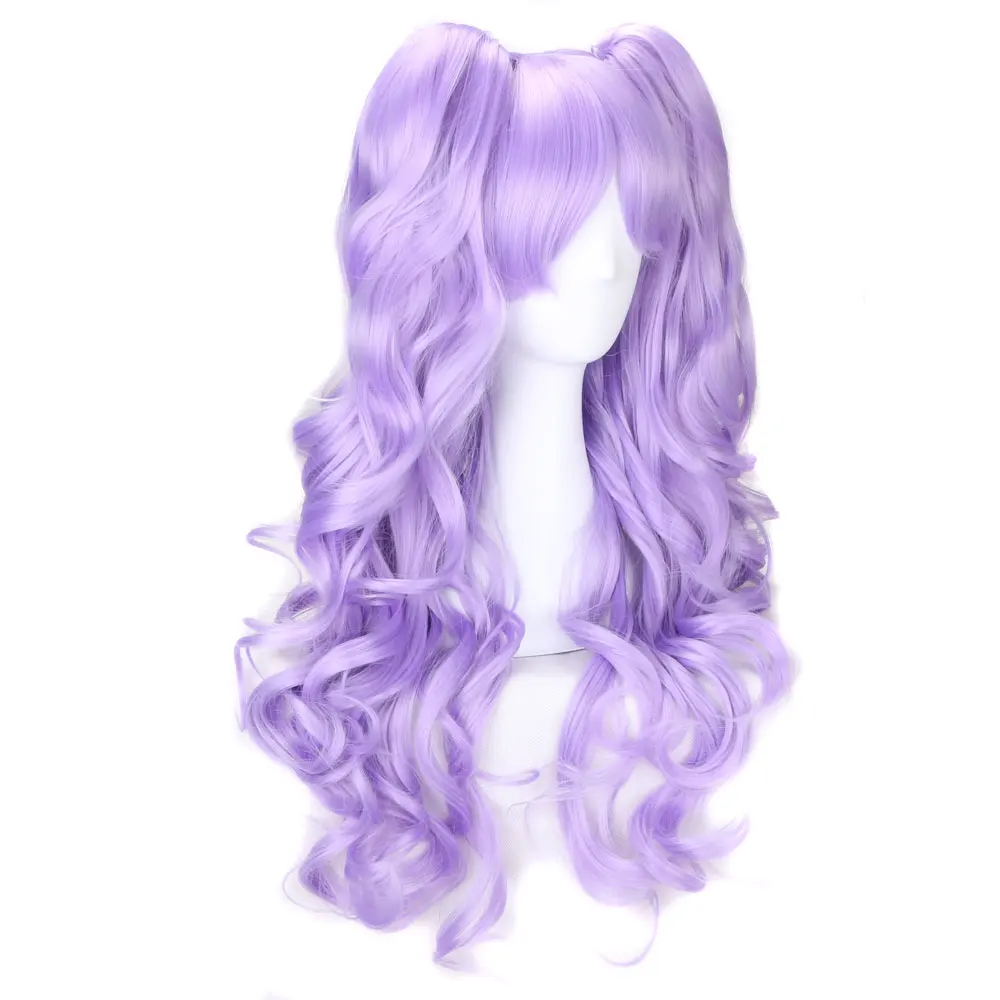 Длинный волнистый парик для косплея с 2 хвостиками синтетические волосы для Хэллоуина многоцветный красный черный коричневый розовый парик термостойкая Лолита