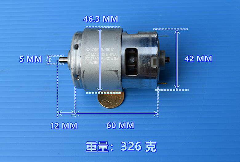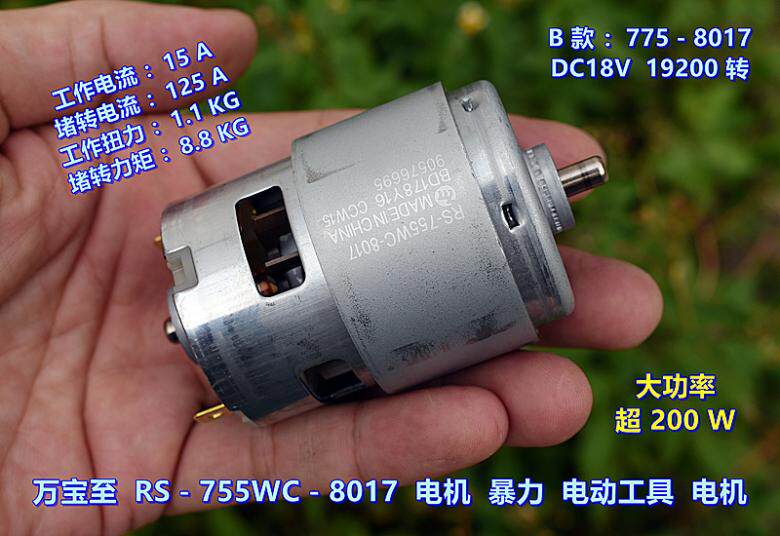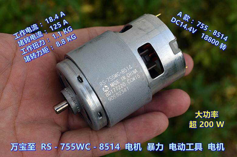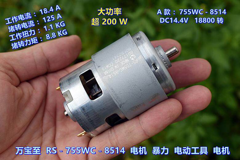 Совершенно новые оригинальные Mabuchi 755WC мотор, высокая мощность, высокая скорость, высокий крутящий момент, внешний вид двух двигателей одного размера, но применимое напряжение отличается, все они сильны 755 двигателей, используемых в электроинструментах, мощность выше 200 Вт, заблокированный ротор ток выше 125A, И вращающий момент при заторможенном Роторе выше 8,8 кг/см. Все Классические электрические инструменты 755 моторов.