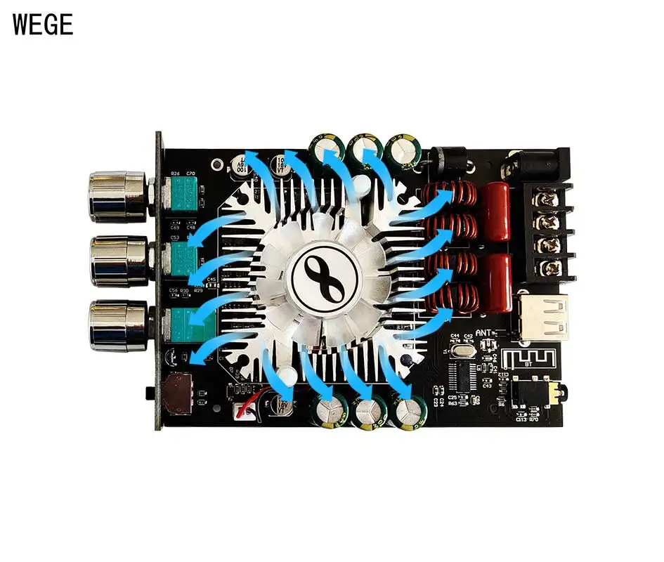Уменьшите общую температуру модуля, чтобы предотвратить его нагревание. Рассеивайте тепло для источника питания, чипов усилителя мощности и фильтрующих конденсаторов, уменьшите повышение температуры и влияние повышения температуры на качество звука и Обеспечьте долгосрочную стабильную работу компонентов.