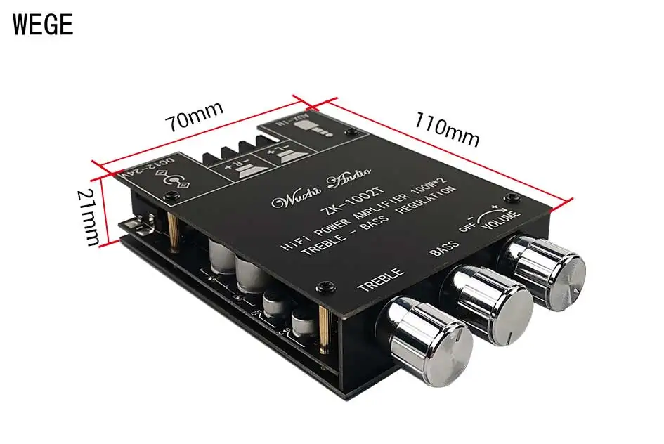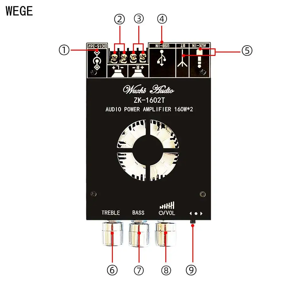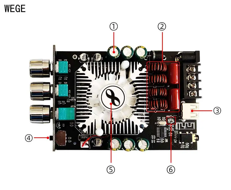 Продукт использует чиповую схему TDA7498E, с выходным фильтром, качеством звука HIFI, воздушным охлаждением и рассеиванием тепла, а также супер мощностью.
