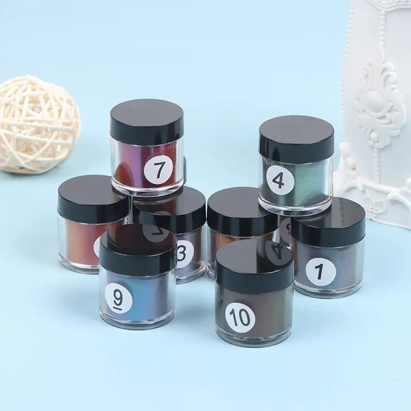10 цветов s : 10 различных цветов s Высококачественный порошок слюды для изменения цвета. (Примечание: меняющий цвет пигмент имеет разный объем из-за плотности порошка.)