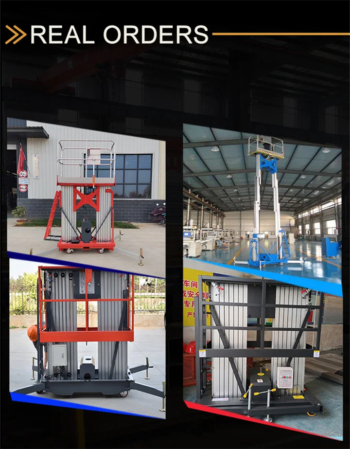 Blift бренд высокого класса двойной мачты алюминиевый подъемникПринимает высококачественный алюминиевый сплав, чтобы уменьшить вес нетто тела. Таким образом, подъемная платформа из алюминиевого сплава будет гораздо проще для оператора, чтобы передвигаться.